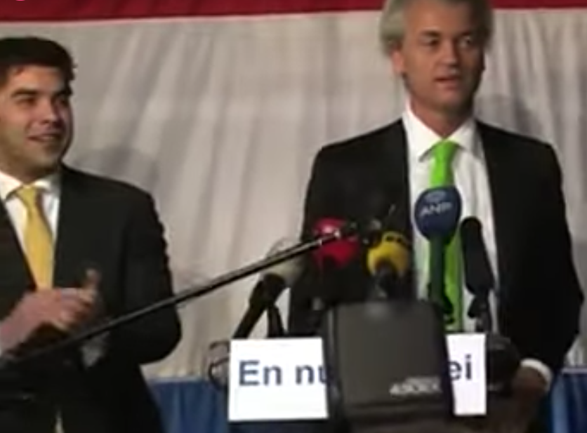 “Drie vragen, alsjeblieft geef een helder antwoord, die onze partij, de PVV, definiëren. En de eerste vraag is: Willen jullie meer, of minder Europse Unie? (Mindeeeeeeer, minder, minder, minder…)